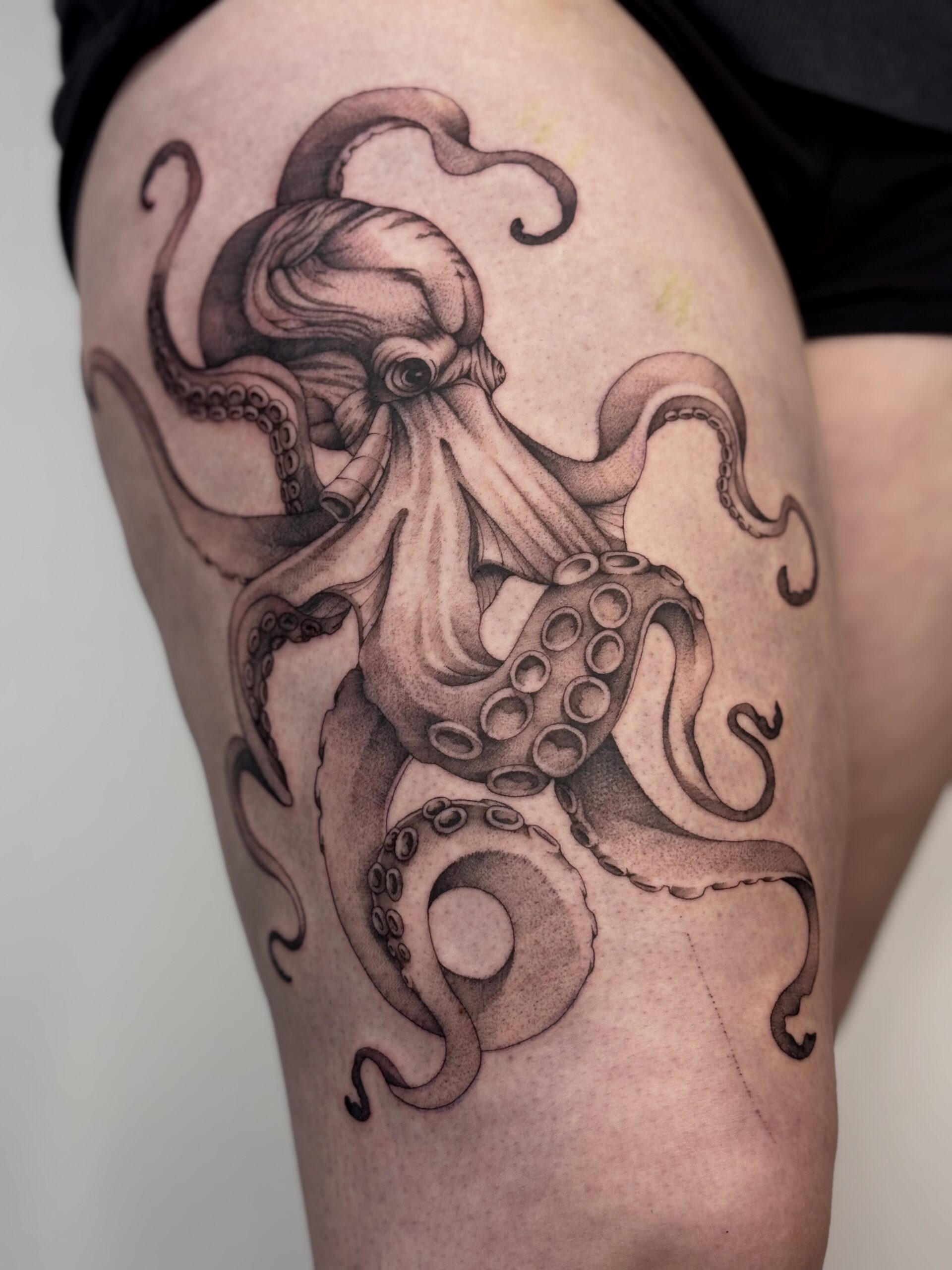 Blending traditional foundations with modern realism, Digby creates powerful tattoos defined by crisp lines, bold contrast, and meticulous attention to lifelike form.