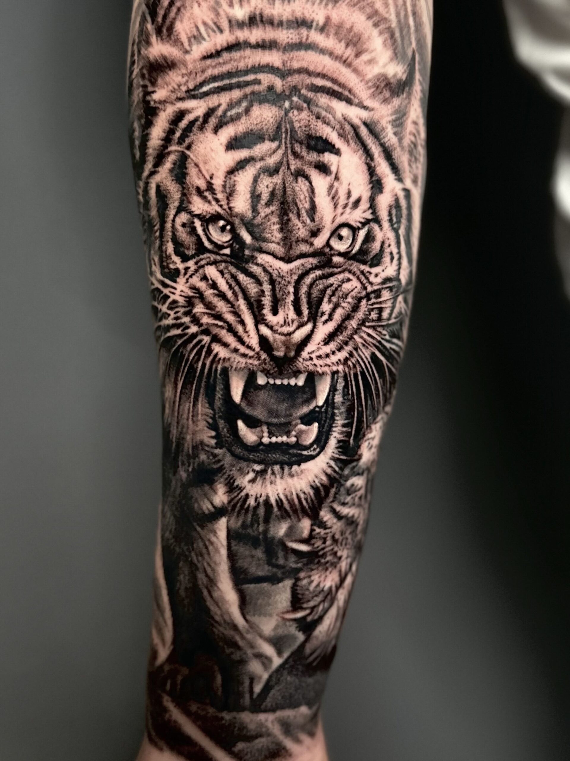 A realism tattoo is more than ink on your skin. It’s your story, your memory, your vision captured in detail that lasts a lifetime. Whether it’s a portrait, a black and grey realism tattoo, or a realism tattoo sleeve, our artists are here to create something deeply personal that you’ll love and want to show off. Take the first step today, and let’s bring your idea to life.