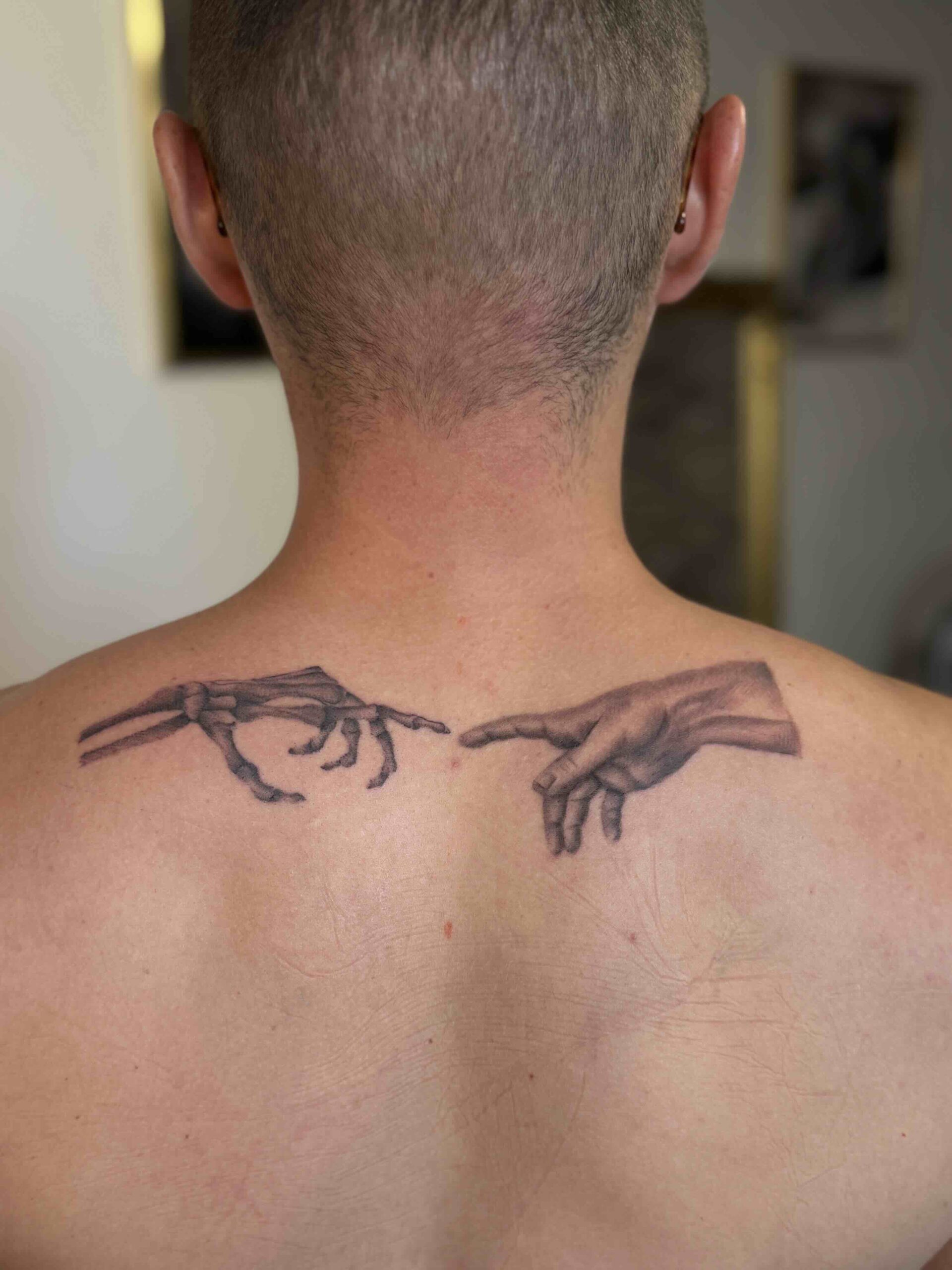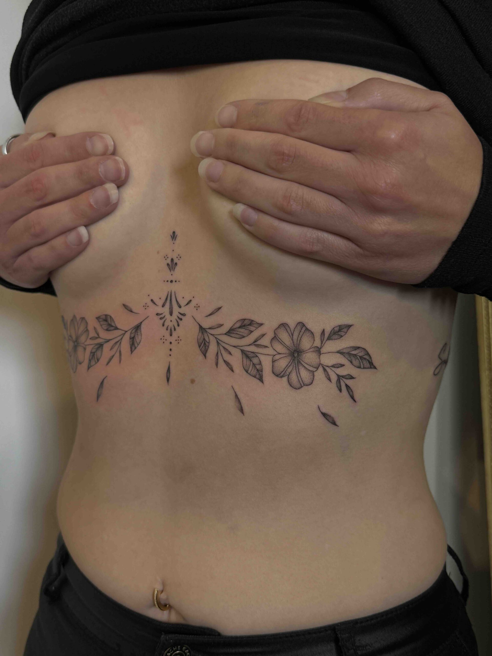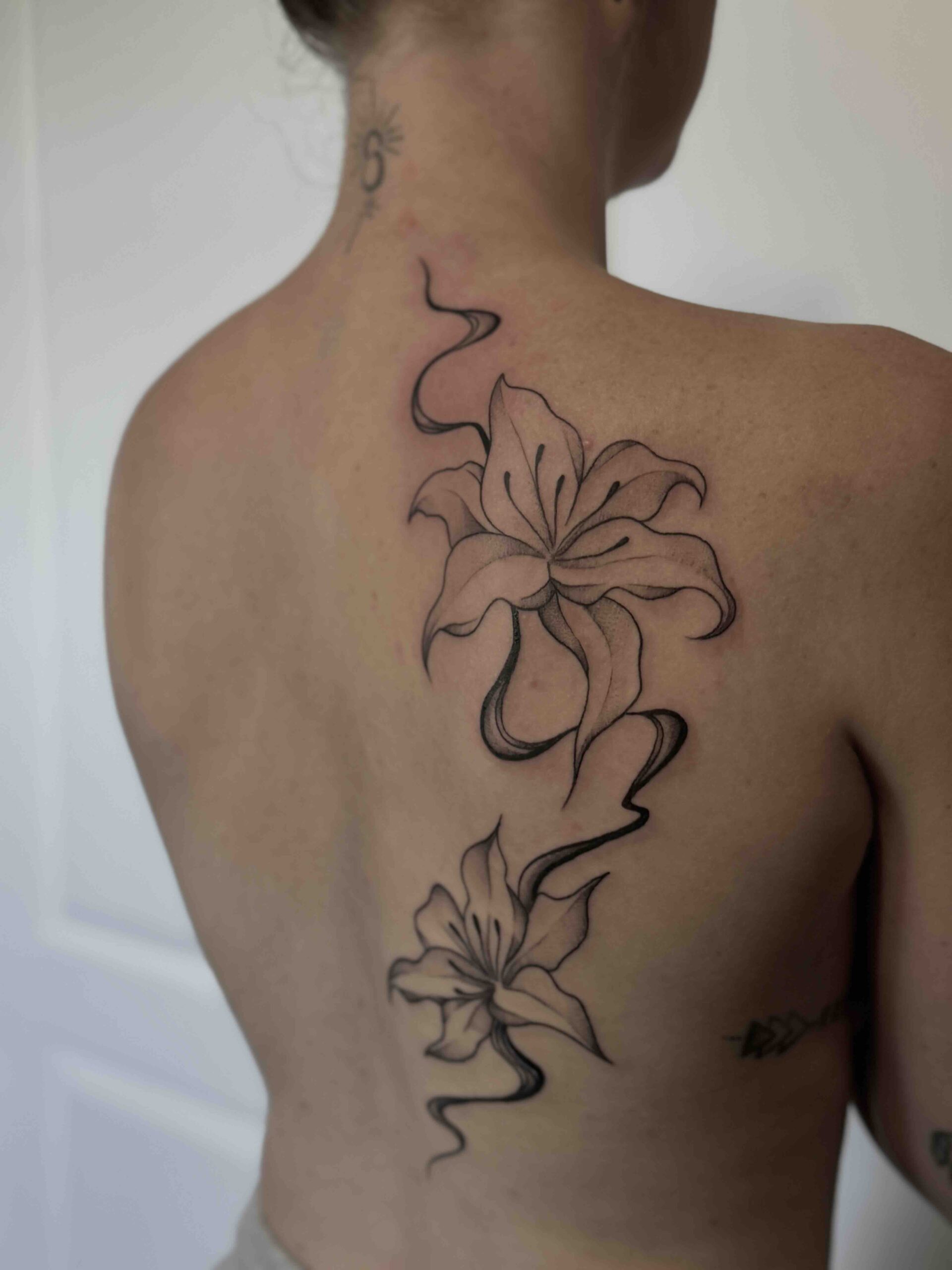 Cassy is a French tattoo artist and creative traveler known for her distinctive blackwork and fine line style. Her work draws on themes of nature, mythology, and surrealism — combining bold imagery with soft detail to create pieces that feel both timeless and personal.