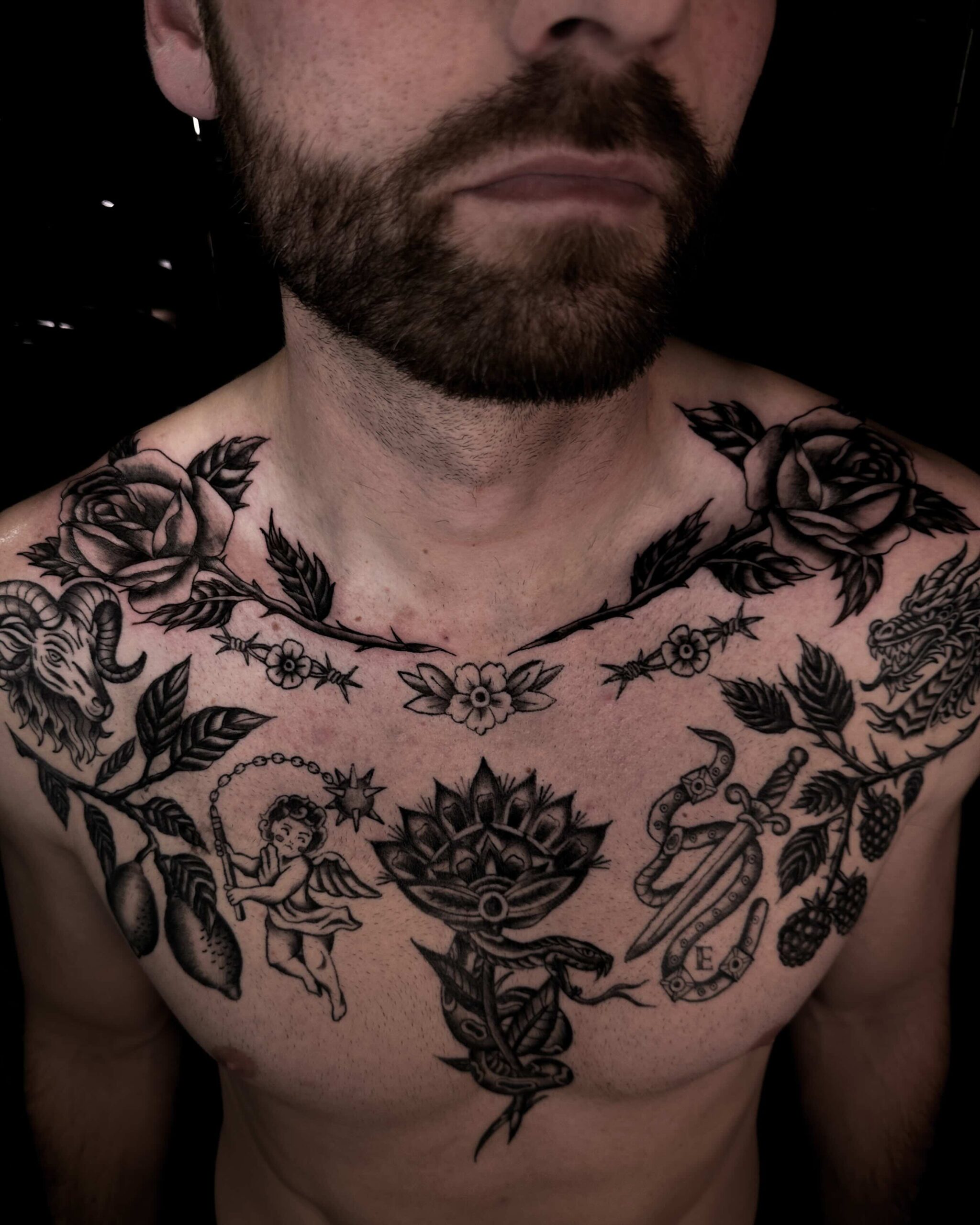 Pau brings a unique blend of artistry and precision to Victims of Ink, focusing on styles that highlight his exceptional skill and creativity. Specialising in Blackwork, Ornamental, Dotwork, Traditional, and Anime/Manga designs, Pau’s tattoos are a testament to his versatility and attention to detail.